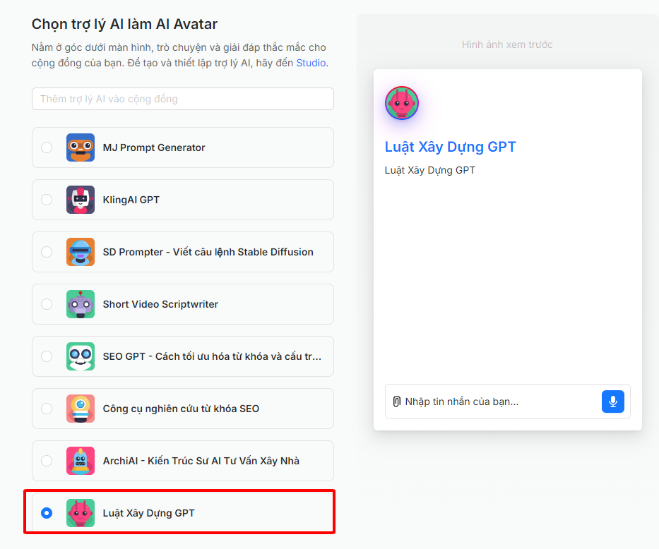 Bước 2 : Chọn trợ lý bạn muốn sử dụng cho cộng đồng